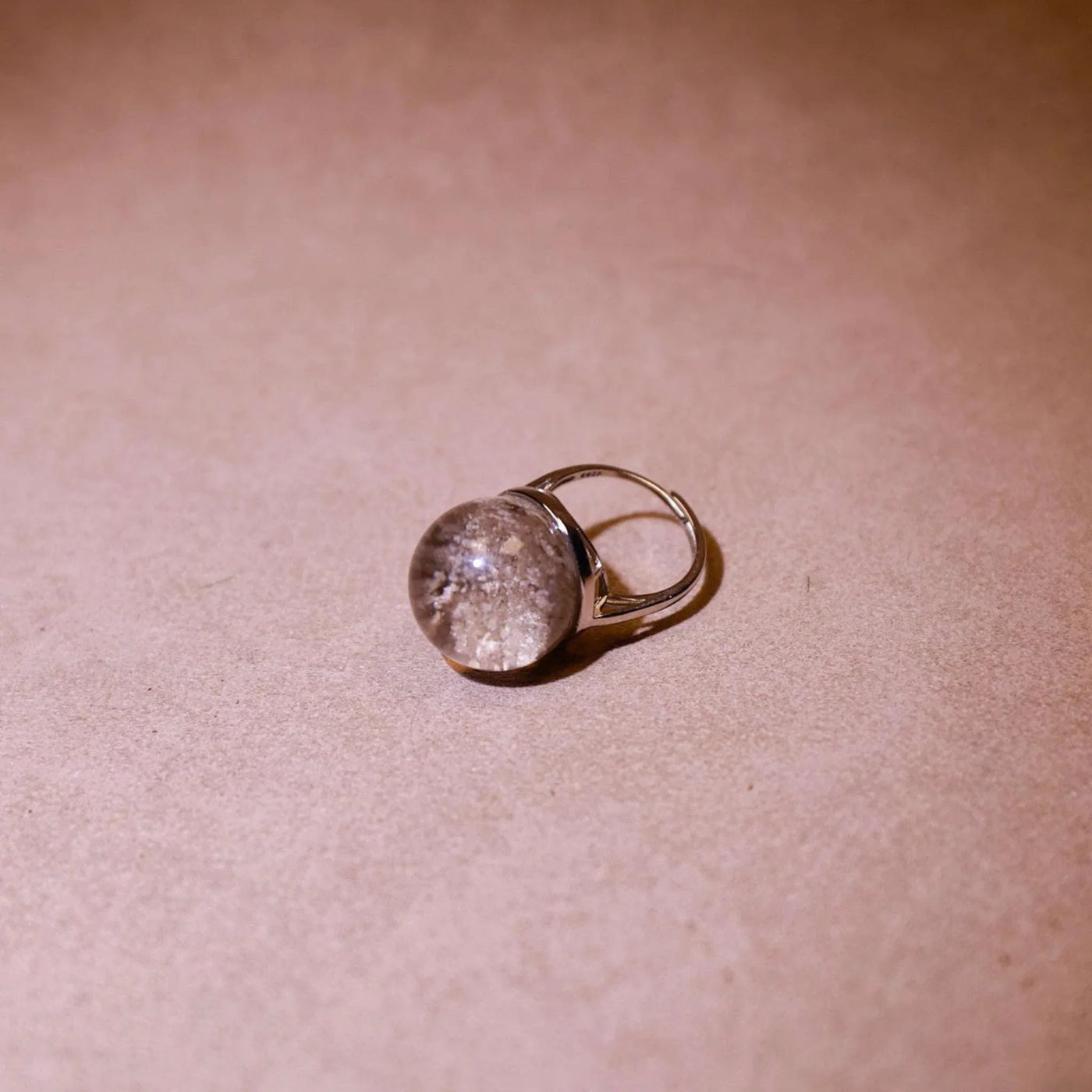 Picture a single drop of rain falling into a still lake, sending gentle ripples outward. This ring captures that moment of clarity. The misty inclusions within the quartz resemble swirling thoughts settling into insight. It invites you into your own "Halo of Stillness"β€”a space where intuition blooms and the mind finds rest.