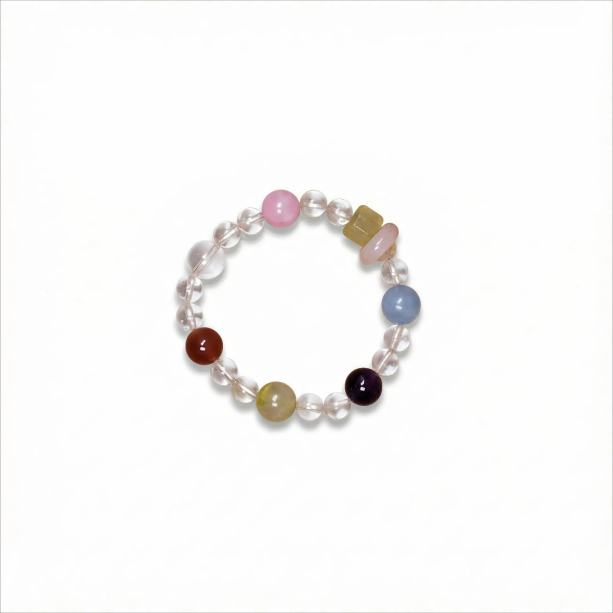 Clear Quartz amplifies energy and clarity, unifying the bracelet’s diverse elements.